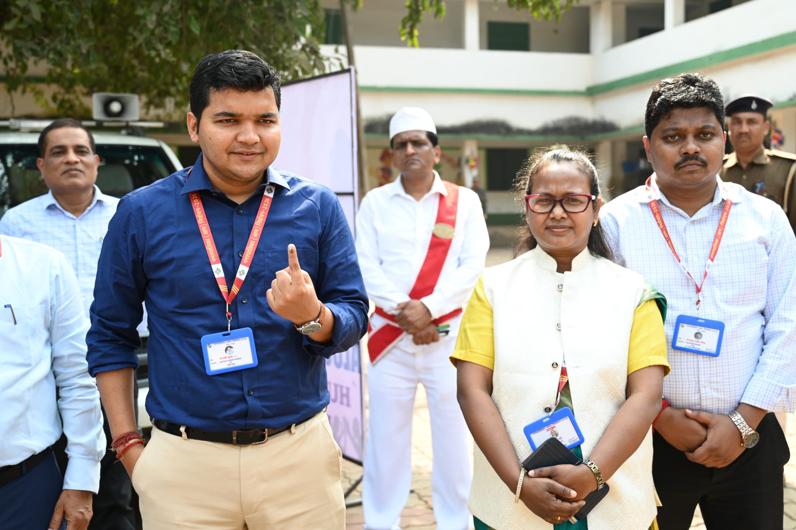 जिला निर्वाचन पदाधिकारी ने मध्य विद्यालय धनूषपूजा मतदान केंद्र में अपने मताधिकार का प्रयोग किया